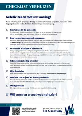 In de brochure 'Een nieuwe woning' staan handige tips en praktische informatie die u als nieuwe huurder moet weten. Zorg dat u de brochure leest: zo bent u goed voorbereid op de verhuizing! Of lees de veelgestelde vragen hieronder.