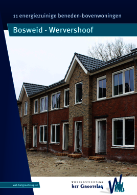 Aan de Bosweid in Wervershoof bouwen wij 11 beneden-bovenwoningen. De vijf benedenwoningen worden levensloopbestendige woningen. De zes bovenwoningen worden driekamerappartementen. De woningen worden door Het Grootslag toegewezen aan woningzoekenden die staan ingeschreven bij